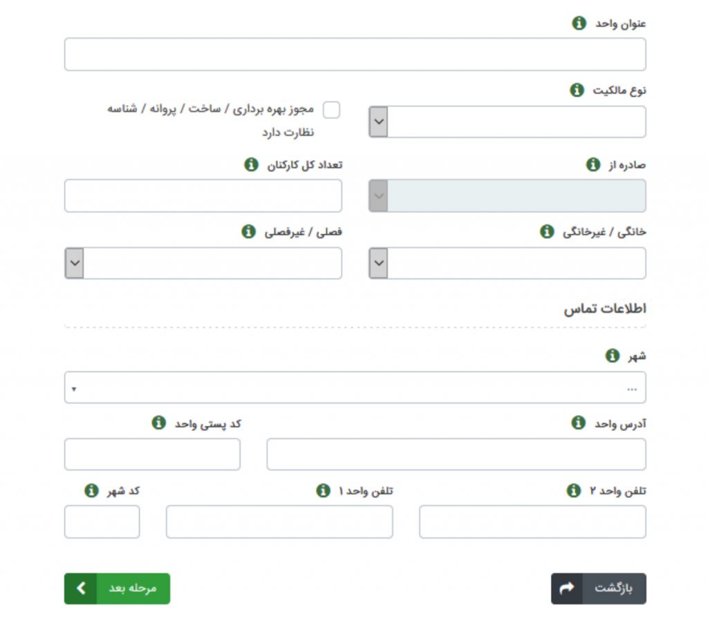 گزینه ثبتنام واحد جدید را انتخاب کرده و اطلاعات مورد نیاز در تصویر زیر را مطابق با واحد اقامتی خود تکمیل کنید.