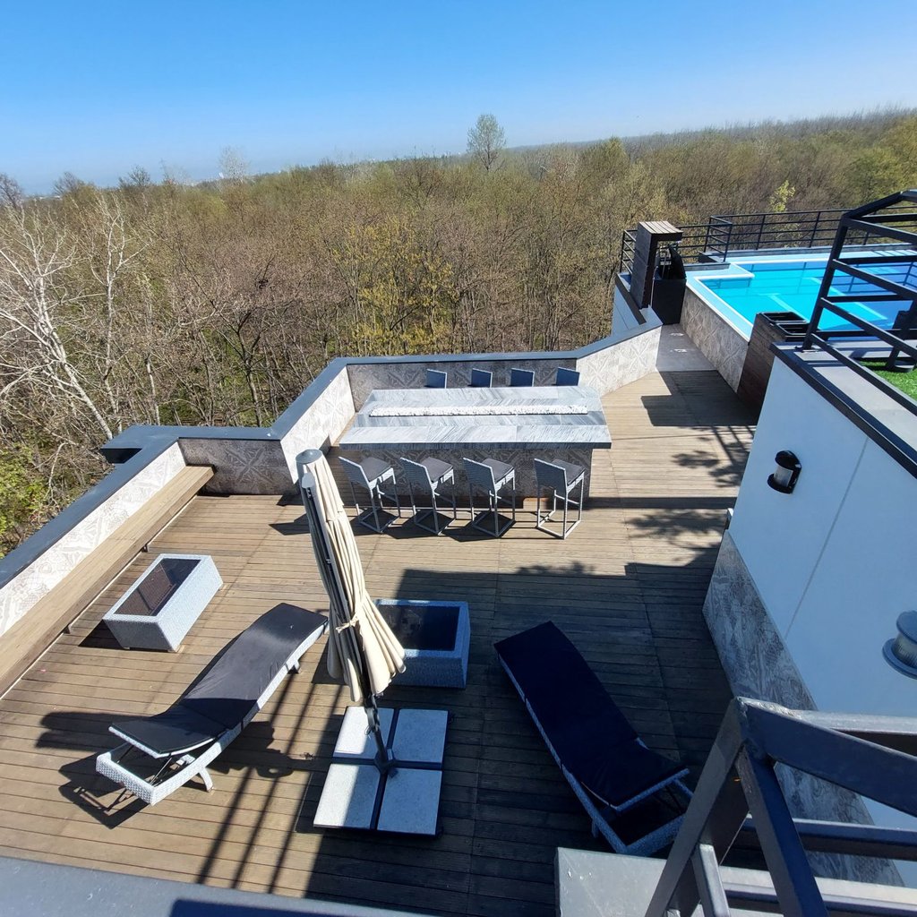 استخر روباز بصورت عمومی که با احترام متقابل توسط میهمانان تا ۸ شب قابل استفاده است و امکان رزرو ساعت اختصاصی با هزینه جداگانه وجود دارد.