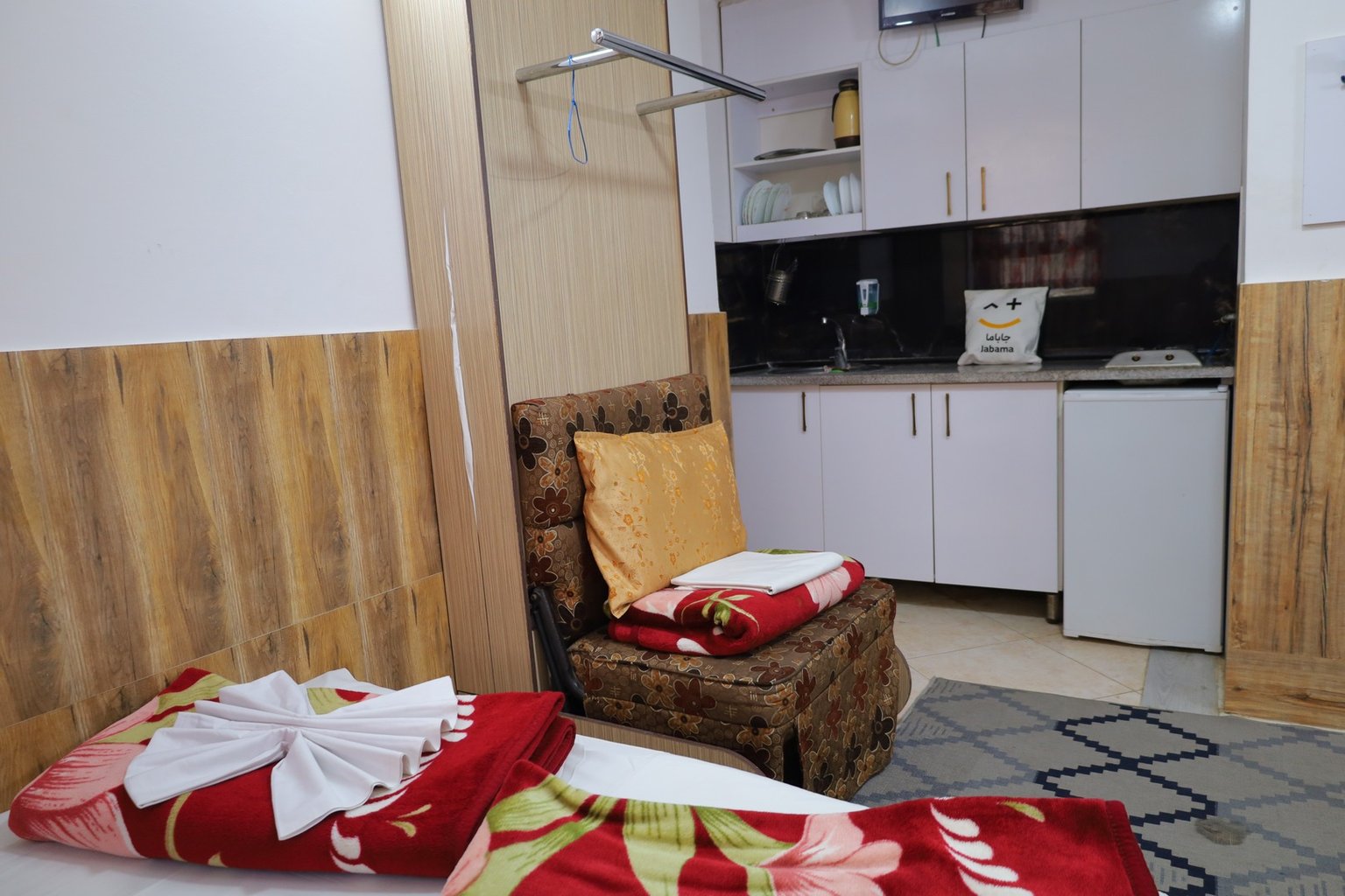 تخت خواب ها تر تمیز بود خوشبختانه نقصی ندیدیم ما رفتار میزبان هم شایسته بود متشکرم .