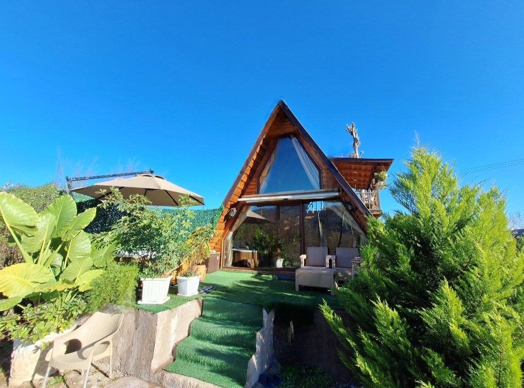 زمین والیبال و تاب و میزو صندلی و و سایبان در آن قرار دارد. این کلبه تماما از چوب ساخته شده است و کاملا حس و حال چوبی بودن در آن القا می شود.