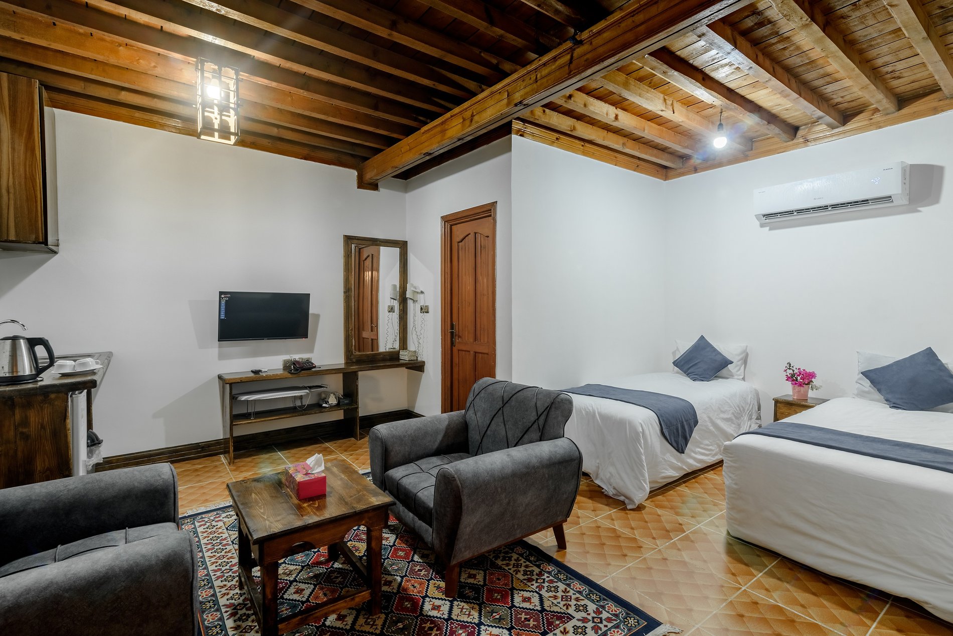 قشم، سرزمینی با رنگ های متفاوت، در میان انبوهی از اب و موج و نور، با مردمانی گندم گون و مهربان، لبخند بخشی از زیست این مردمان است، لبخندی آمیخته با مهربانی و محبت، با لهجه ای شیرین و دوس داشتنی، مردم جنوب در همان لحظات اول یه چیزی رو دل شما میکارند که دلگرمی عمیقی رو برای شما از انتخاب سفر به وجود میاره، با خودت میگی، اره، درست انتخاب کردم جنوب بهترین انتخاب سفر من بود، قشم در همان لحظات اول شما خیره میکنه، از فرودگاه که به سمت اقامتگاه میری، در پیچ و وا پیچ جاده ها خیره به رنگ کوه ها و سرزمین قشم میشی، شاید با خودت فکر کنی این جای خشک و بی آب و علف رو چرا انتخاب کردم ، اما عجله نکن، در فاصله کمتر از بیست کیلومتری فروداه میرسی به روستای گورزین و سپس اقامتگاه صفا آباد، چه اسم جالبی داره، صفا ، آباد . یعنی چی ؟ اینجا با صفاست ؟ یا صفا اینجارو آباد کرده ؟ پاسخ این سوال خیلی سادست: صفا آباد رو ادم های باصفای قشم ساختن ، برای لذت بیشتر از اقامت در قشم، اسم مالک اینجا طیبه ، طیب یکی از همون گندم گون های خنده روی جنوبی که وقتی باهاش برخورد میکنی آرامش بعدی که از بابت انتخاب سفر بهش نیاز داشتی رو کسب میکنی. اجازه بده یکم بریم عقب تر ، قبل از در ورودی، بعد از طی کردن مسیر نزدیک و زمانی که نزدیک به مجموعه میشی، یه سردر بزرگ توجه تورو به خودش جلب میکنه، یه در چوبی بزرگ شبیه به ورودی یه قلعه، اما این ورودی یه قلعه دوره رنساسن نیست، اینجا سر در ورودیه صفا آباده ، جایی که قراره در اونجا جز صفا و صمیمیت و خوش رویی چیزی رو نبینی، اتاق های اقامتگاه بوم گردی صفا آباد قشم در حاشیه محیط مرکزی قرار گرفته که شما از طریق راهروهای چوبی به سمت اتاق ها هدایت میشی، اتاق ها با فاصله مناسب از هم قرار گرفته و حس آرامش رو ایجاد میکنه، اتاق های بزرگ، با تخت و ملحفه های تمیز، سرویس بهداشتی و حموم تمیز، یخچال و چایی ساز در اختیار شماست، اتاق ها مجهز به سیسم خنک کننده که اصلا حتی ی ذره هم نگران گرما نباش، وسیله هاتو بذار بیا بریم از محوطه وسط مجموعه واست تعریف کنم ، وسط مجموعه یه زمین بزرگ سبز رنگ هست، البته منظورم از سبز کفپوش چمن مصنوعیه، دورتادورش تخت های بزرگ با پشتی برای رفع خستگی پرواز، رفع خستگی شنا، رفع خستگی بعد از گشت و گذار توی قشم، اونجا هر چیزی هم ک بخای هست، فست فود ؟ آماده قهوه؟ بفرما چایی؟ چشم شیک؟ چه نوع شیکی میخای؟ ببین. اینجا صفا آباده ، اومدی که صفا کنی، خیالت راحت راحت، با غذاهای دریایی مشکل داری؟ بوش اذیتت میکنه ؟ جوجه میزنه واست از جوجه های رستوران های تهران بهتر میگو دوپیازه میاره واست که عطر و طعمش باعث میشه نتونی چشاتو باز نگه داری. بعد از غذا قلیون میخای ؟ بفرمایید، اینم قلیون . . رفتی قشم روی صفاآباد حساب ویژه ای باز کن . مطمئن باش ناراضی بیرون نمیای