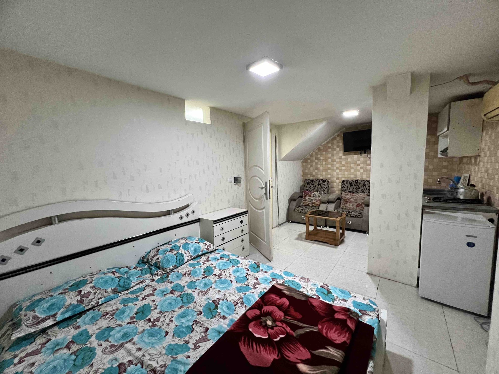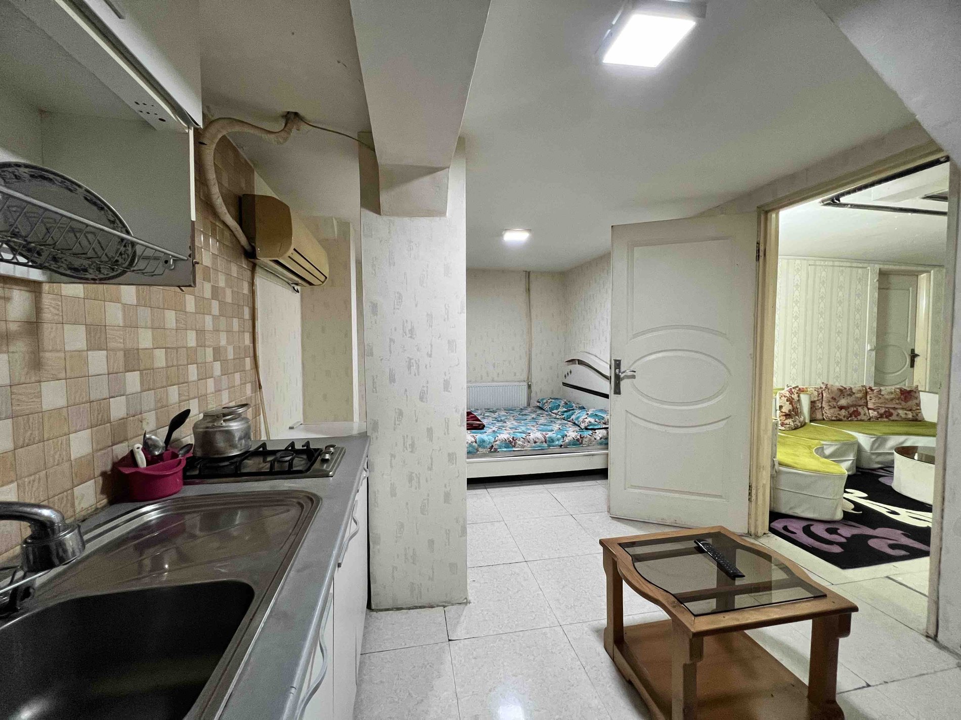 یک واحد بیست متری فلت دارای آشپزخانه کوچک و حمام و سرویس بهداشتی خارج ار اتاق بوده .جهت حفظ حریم خصوصی میهمان برای راهروی که منتهی میشود به سرویس و حمام با درب شیشه ای پوشش داده ایم .کنتور های گاز در راهرو قرار داده شده اند و مربوط به اتاق نبوده و تنها به دلیل حفظ حریم خصوصی میهمان یک درب ورودی بروی راهرو قرار داده شده است به هیچ عنوان امکان مصرف دخانیات وجود ندارد.راس ساعت 12 شب تا 6 صبح درب ورودی ساختمان قفل شده و امکان ورود و خروج نمیباشد کلید درب ورودی ساختمان به میهمان ها داده نمیشود و تنها به میهمان کلید سوئیت رزرو شده داده میشود و تنها ورود و خروج میهمان با هماهنگی نگهبان امکان پذیر است.