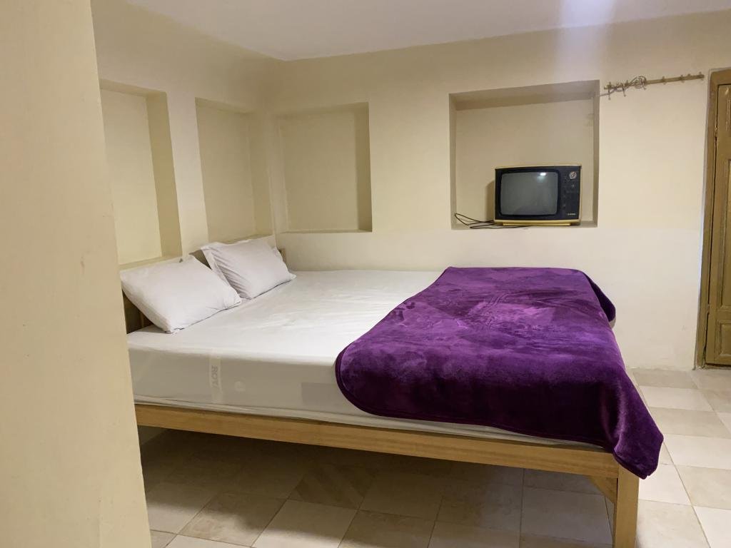 یک مجموعه تاریخی با دیوارهای گلی قدیمی و یک حیاط زیبا با یک حوض قدیمی و اتاق های با…