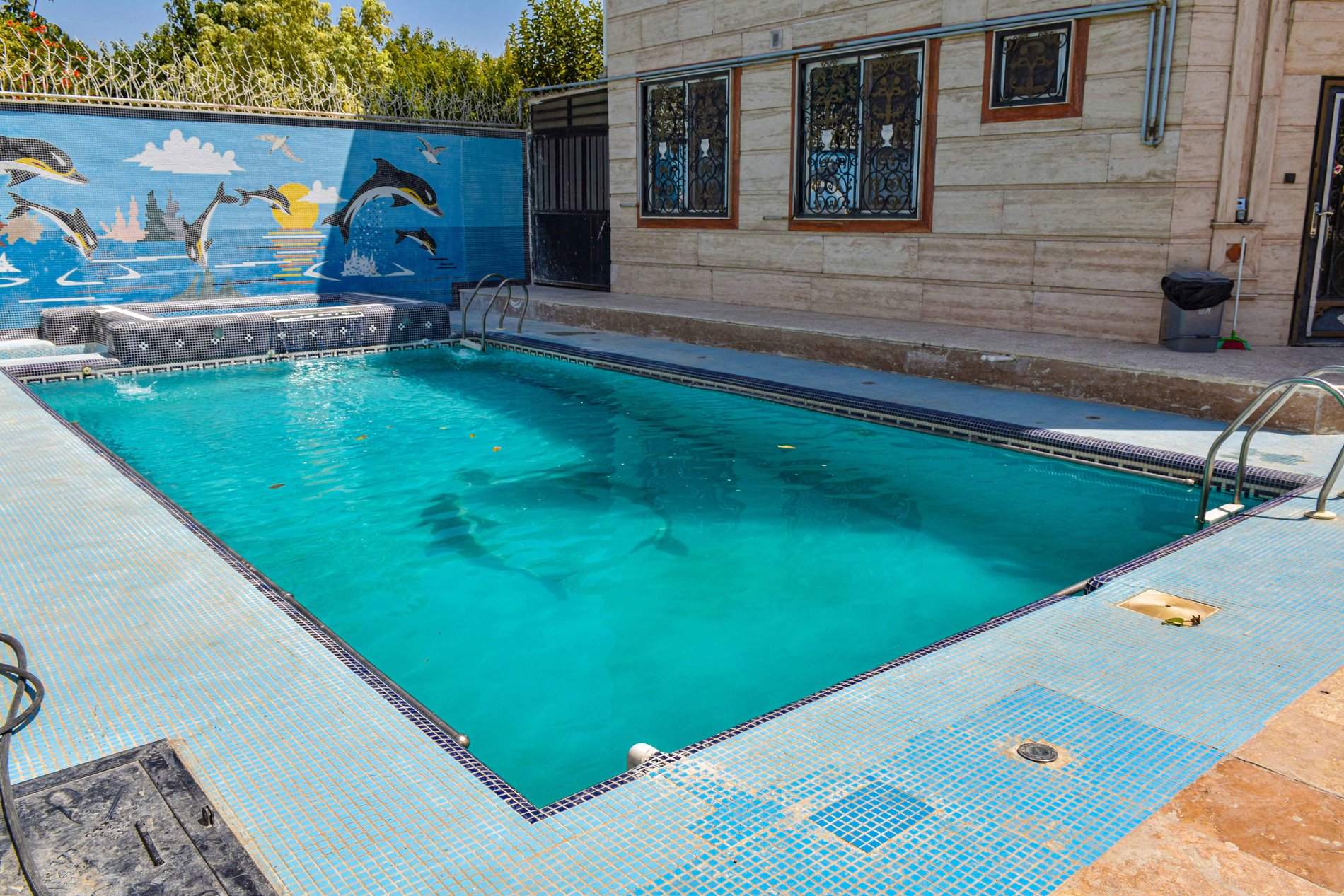 استخر ویلا مجهز به تصفیه 24 ساعته و اتوماتیک می باشد.