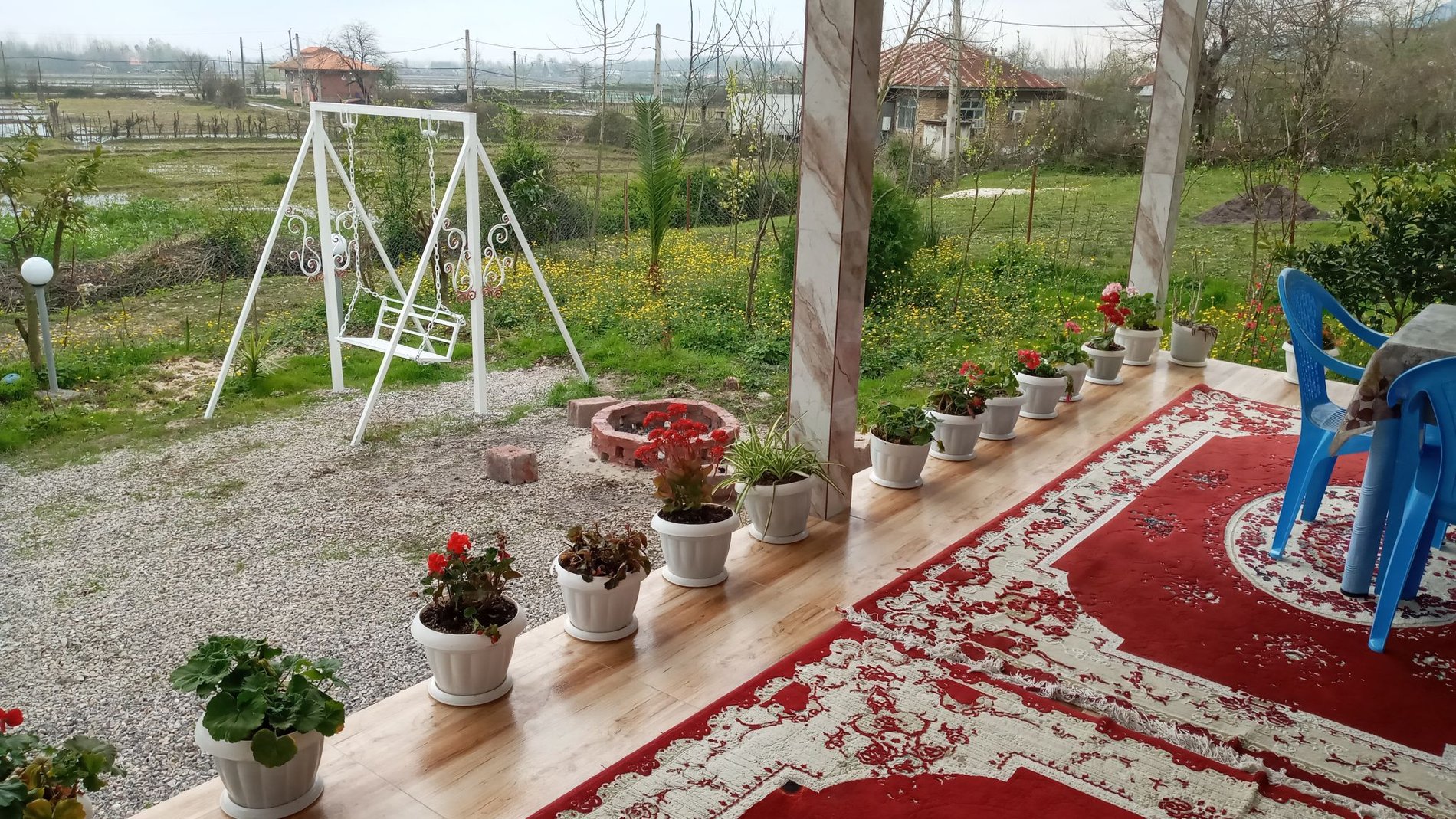 دارای حیاط 1000 متر دربست است و پشت اقامتگاه دارای حیاط 5000 متر غیر دربست برای پیاده روی است.