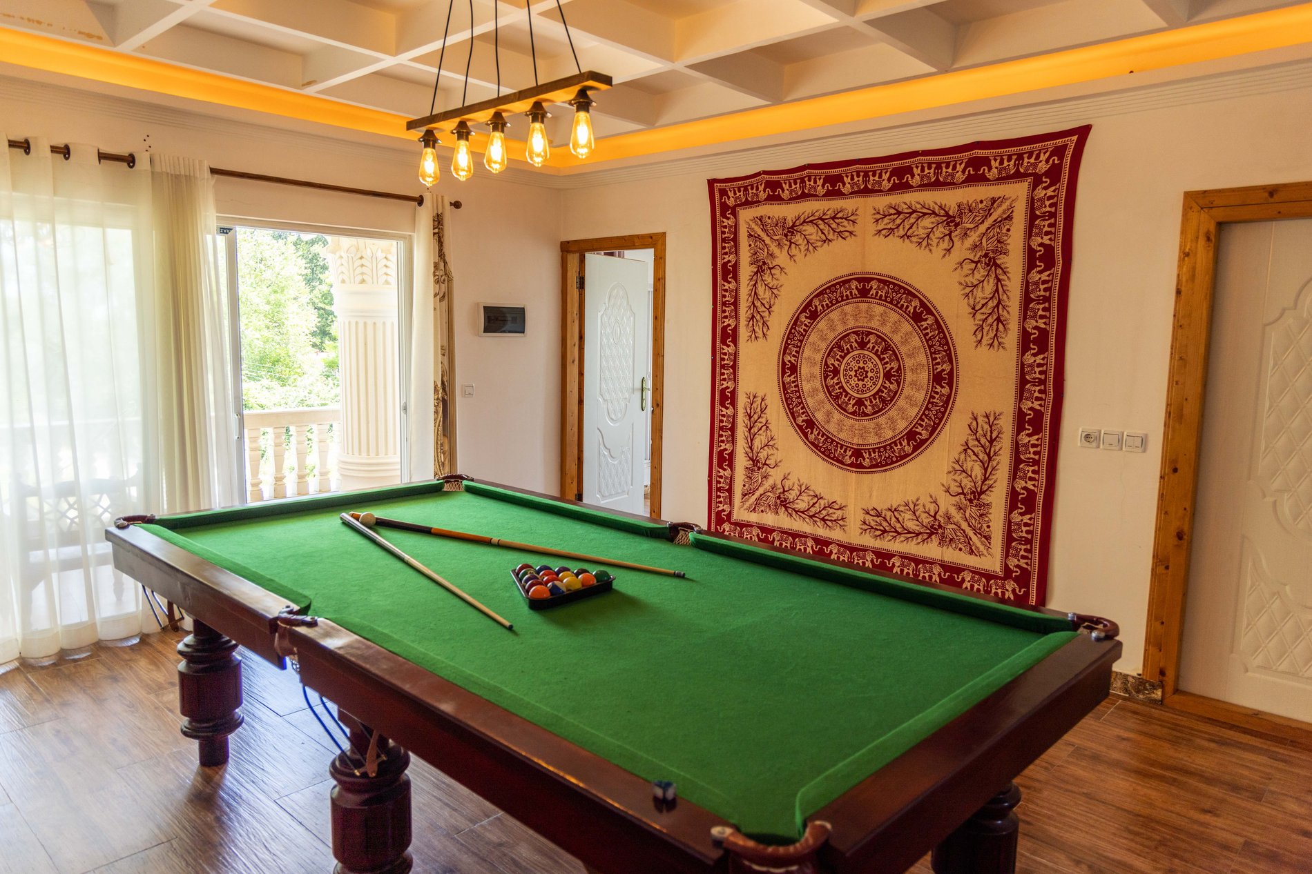 در حیاط دل انگیز و ۱۰۰۰ متری آن، نمودی از درختان هیرکانی که تنها ذخیره گاه آنها همین منطقه می باشد قابل لمس است. که با این وجود در فصل گرم سال محیلی دل انگیز و سرشار از آرامش برای حمام آفتاب در کنار استخر به همراه صدای گوش نواز سیستم صوتی حرفه ایی برای شما فراهم می آید.