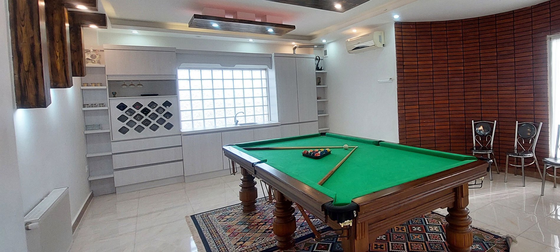 همچنین بیلیلرد و فوتبال دستی در محیط ویلا برای سرگرمی بیشتر تعبیه شده و ویلا دارای باربیکیو نیز می باشد .