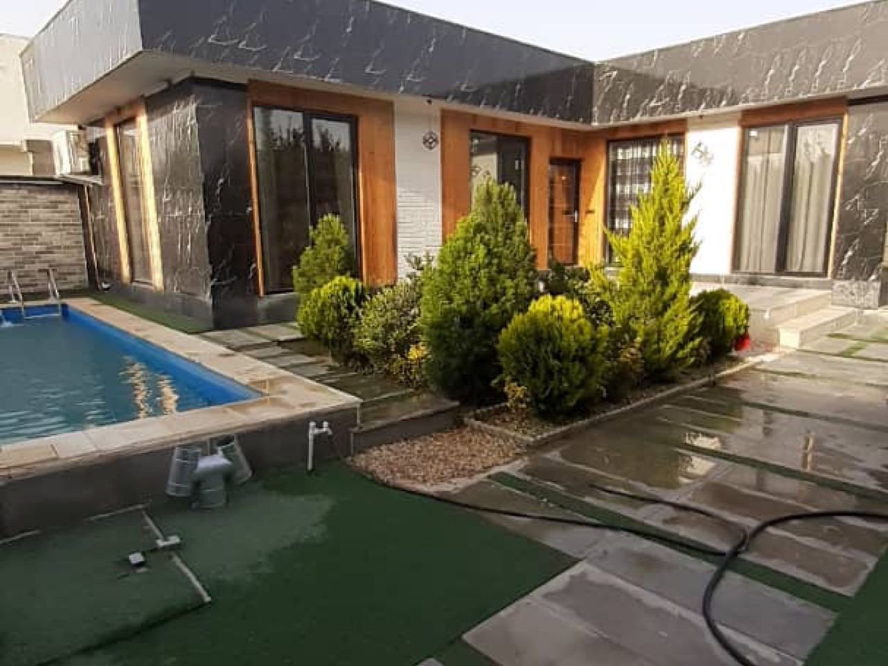 مرداد 14031 شب اقامت در اقامتگاهکف استخر زیاد تمیز نبود و با اینکه ابگرمکن استخر رو زده بودن ولی همچنان اب استخر سرد بود . فضای داخل خونه میتونست خیلی تمیزتر باشه ولی فضای بیرون ویلا خوب بود.