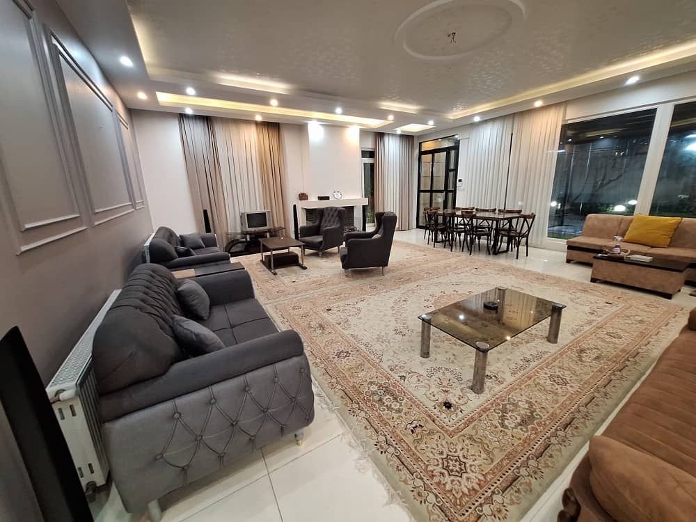 حدود 5۰ متر پذیرایی بدون ستون دارد که با شیشه های قدی مثو سرتاسری میتوان محوطه حیاط را دیدن کرد